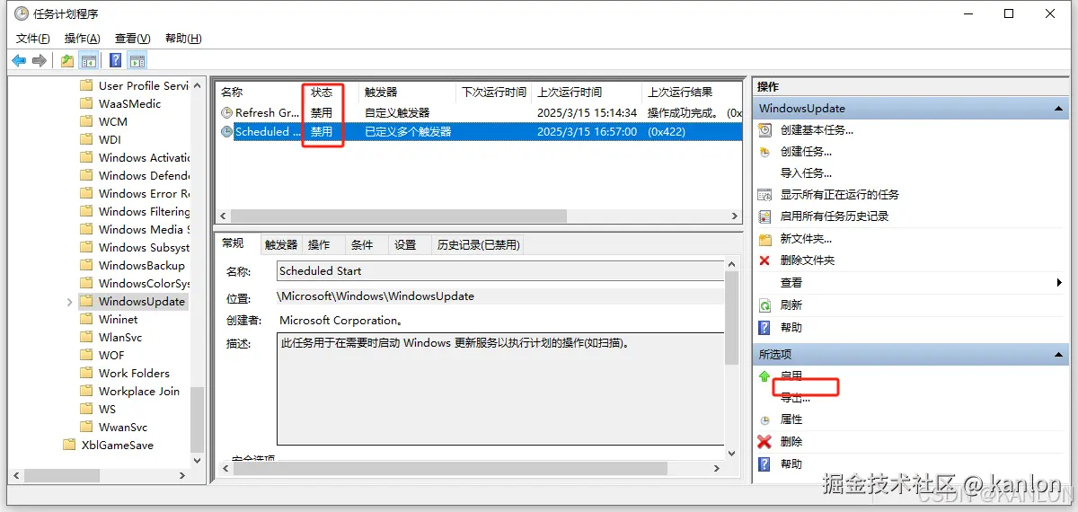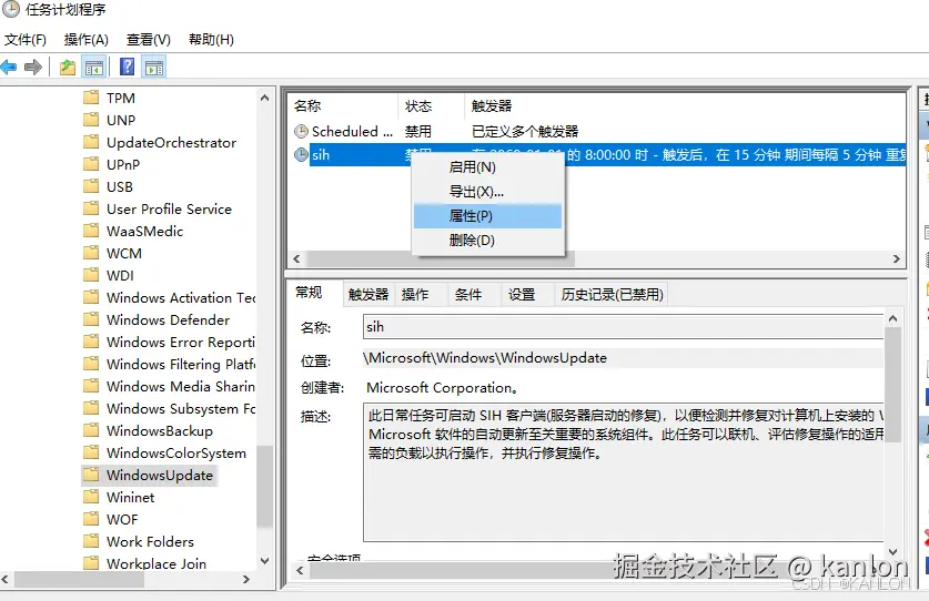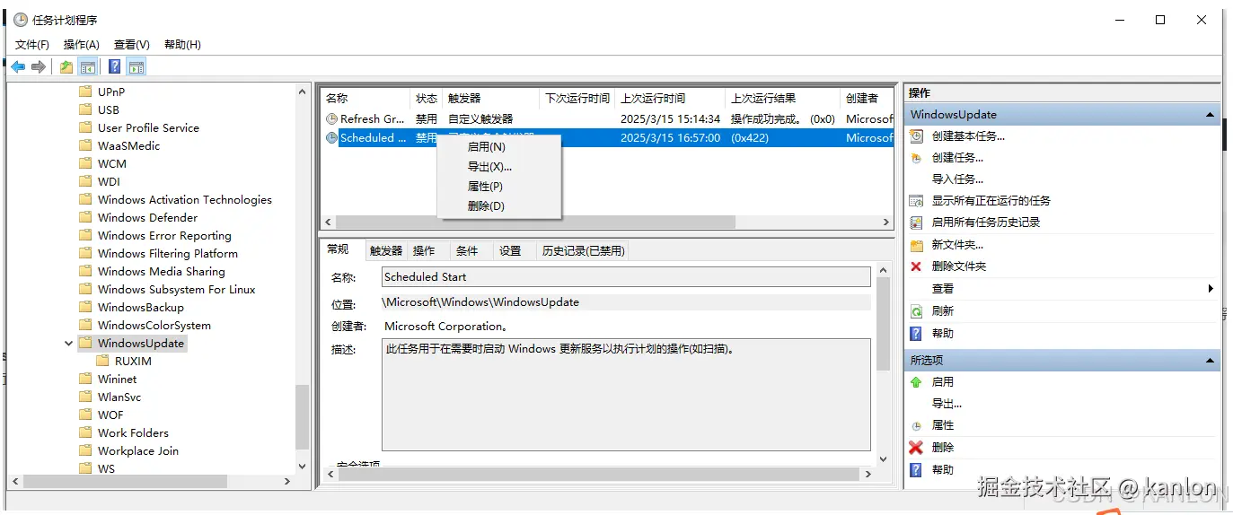 输入之后,会自动打开任务计划程序界面,然后以此展开任务计划程序库 -> Microsoft -> Windows -> WindowsUpdate ->。右键单击要禁用的两项 Refresh Group Policy Cache和Scheduled Start,你会发现就可以禁用了,禁用完之后,再关掉cmd界面