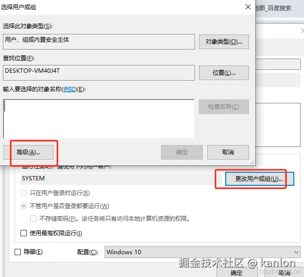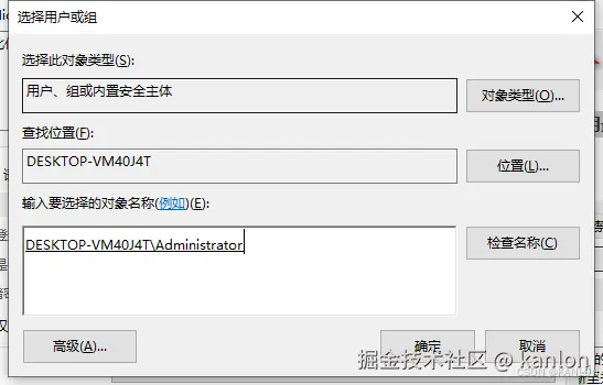 (2)点击“更改用户或组”,点击左下角的“高级”按钮