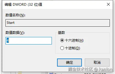 计算机\HKEY_LOCAL_MACHINE\SYSTEM\CurrentControlSet\Services\UsoSvc,然后在右侧找到Start键,双击修改,把start值改成16进制,值改为4,点击确定,如下所示