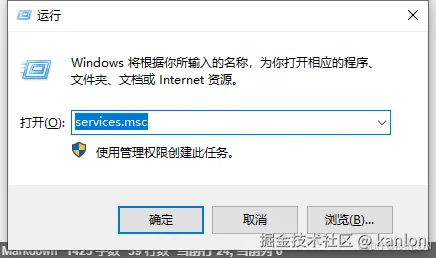 services.msc后按Enter键确认,打开服务列表窗口 -