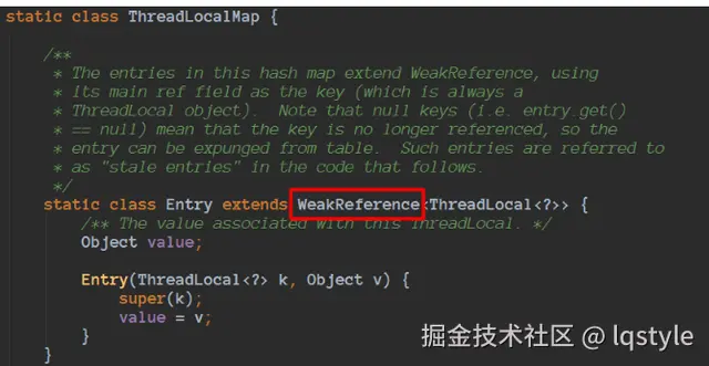 static class Entry extends WeakReference<ThreadLocal<?>> {