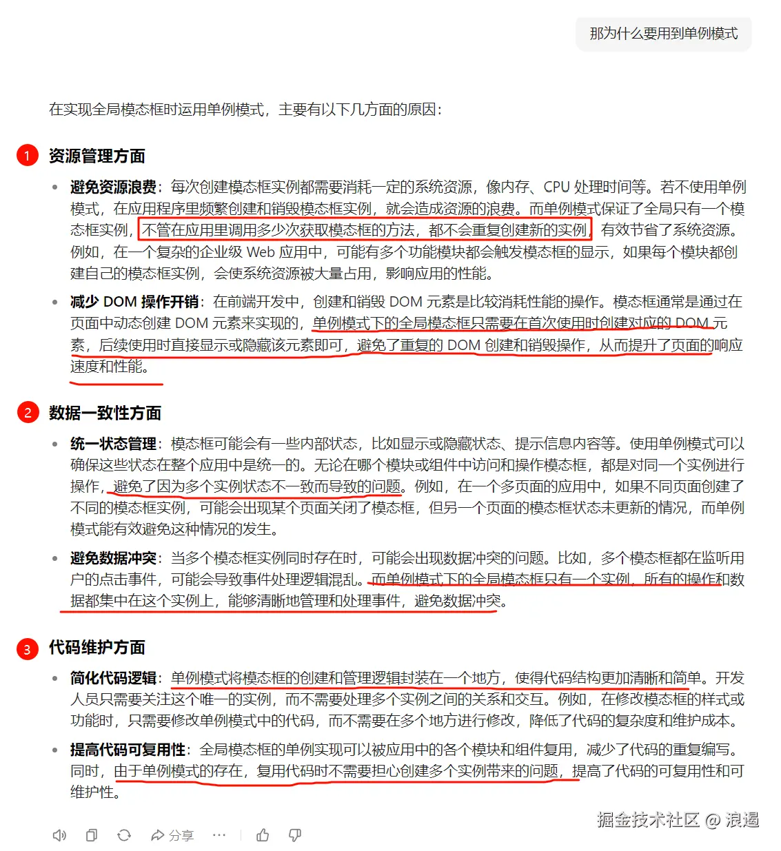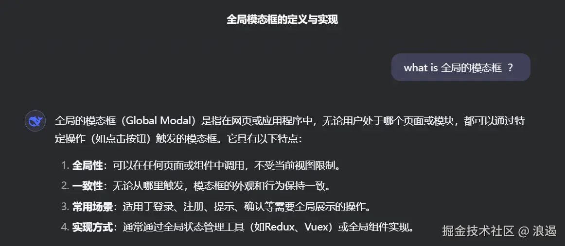 如果在激情朗诵完 【单例模式】的八股文后 , 面试官看你朗诵的挺有感情的 ,想进一步考察你 , 于是战术性后仰 , 嘴角微微扬起 , 抛出一个手写题 —— 实现一个全局的模态框 ( Modal弹框 )