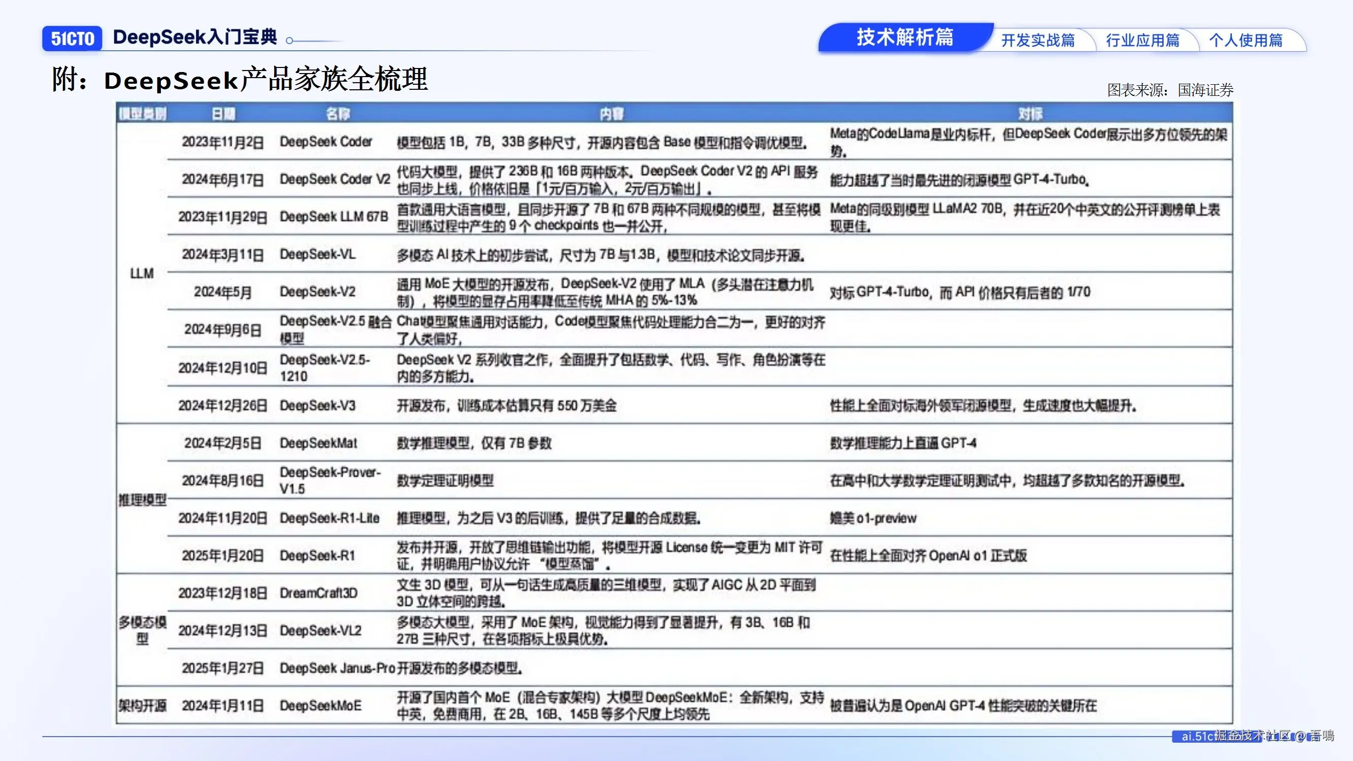 梳理DeepSeek系列产品,包括代码模型(DeepSeek Coder)、多模态模型(DeepSeek VL)、推理模型(R1系列)等,强调其技术优势(如对标GPT-4但成本极低)。提供学习资源链接(官网、51CTO AI专区、在线课程)及企业学习方案(覆盖技术架构、大数据管理、AI应用等)。 - 附录与图表