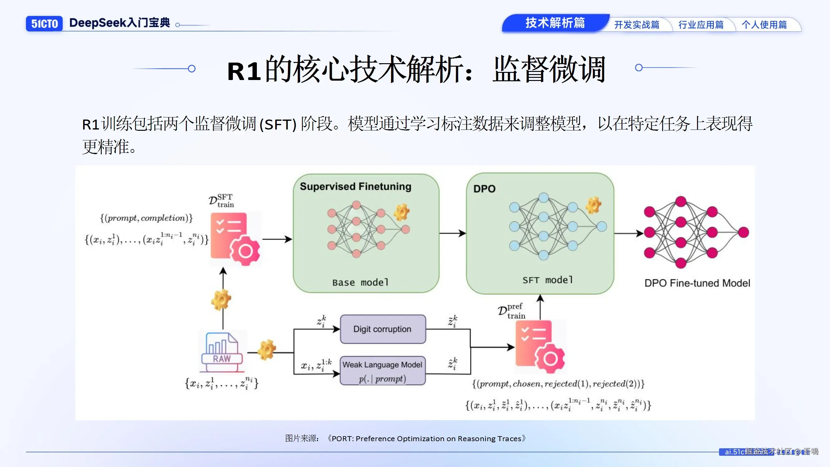 今天吾鳴给大家分享一篇有51CTO智能研究学院出品的DeepSeek报告——《DeepSeek入门宝典——技术解析篇》。报告主要从DeepSeek概述、R1核心技术解析、R1与OpenAI o1的差异以及进化方向、DeepSeek产品家族与资料,报告同时还给出了性能对比数据、技术原理图示等。报告一共21页,文末有完整版下载地址。