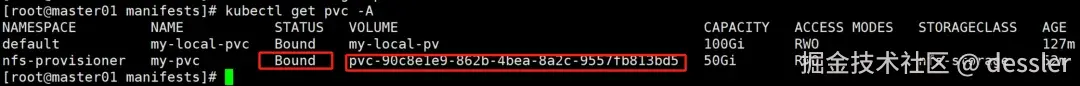 这个时候PVC创建成功,在NFS服务器里面会创建对应PVC的目录,这样可用确保每个PVC都是有自己独立的目录。确保数据不冲突,管理也更方便。