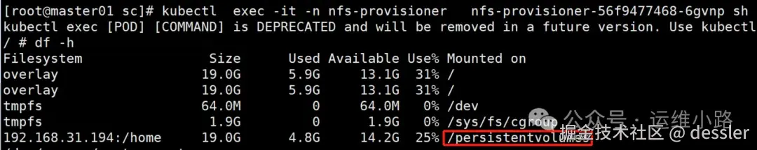 创建一个NFS控制器的Deployment,引用刚才的ServiceAccount,使得这个Pod具备操作pv及pvc和sc的相关权限和能力。