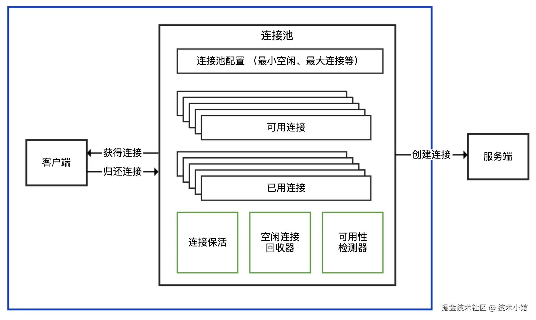 - 合理的连接池配置:需要根据系统实际流量和服务特性,进行连接数和超时的调优,避免过小或过大的配置。