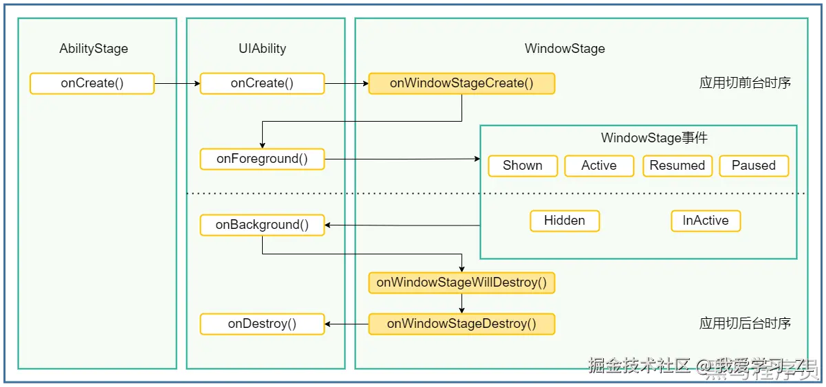当用户打开、切换和返回到应用时,应用中的UIAbility实例会在其生命周期的不同状态之间转换UIAbility类提供了一系列【回调函数】,如果需要在特定的时间添加自定义逻辑,往对应的回调函数内添加代码即可