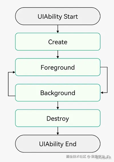 UIAbility的生命周期包括Create、Foreground、Background、Destroy四个状态: