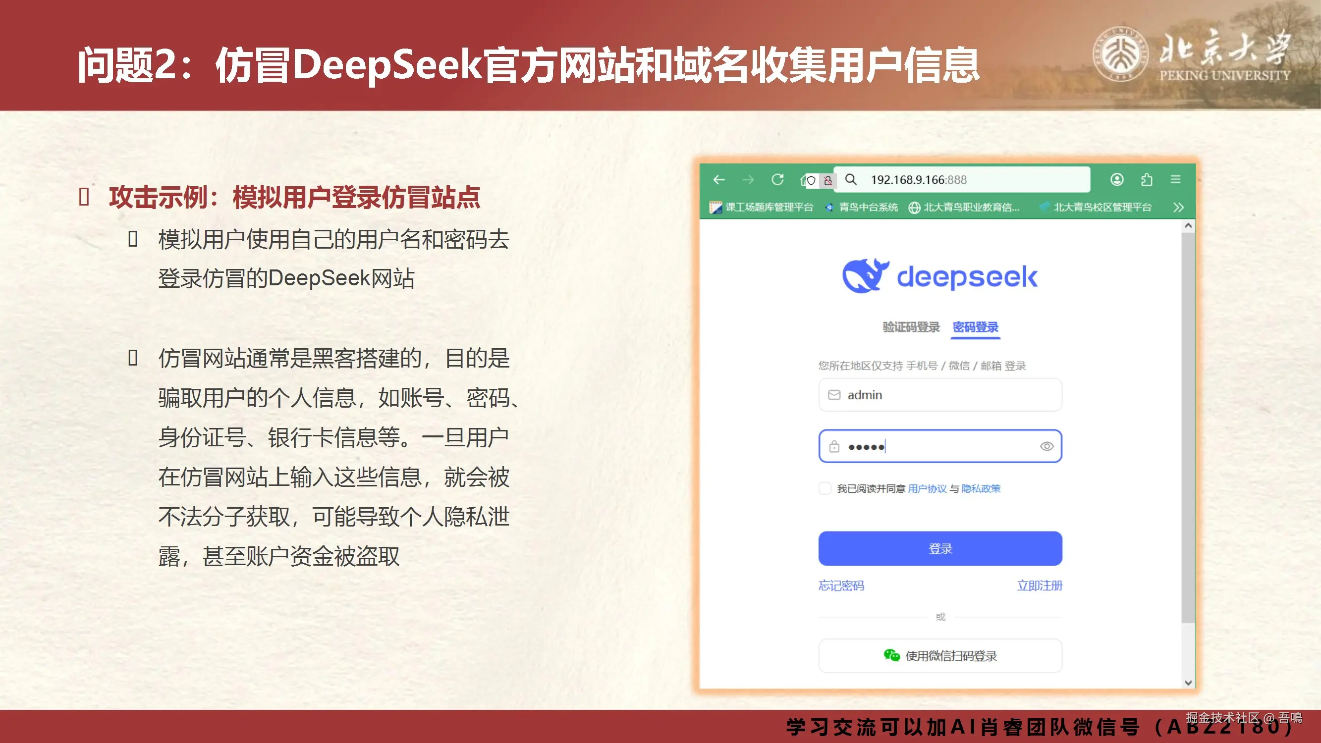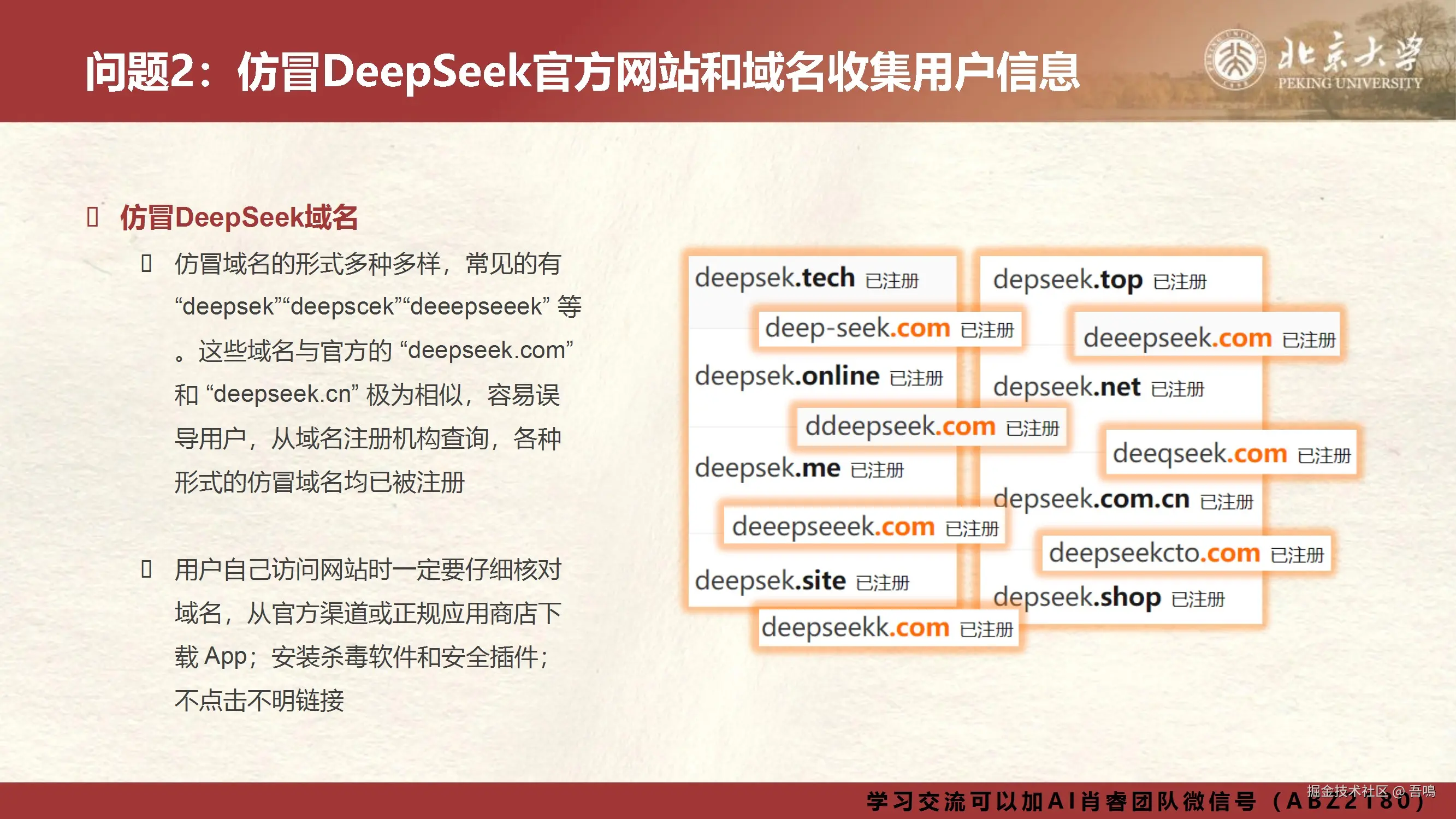 ② 仿冒网站与域名:通过相似域名(如deepsek.tech)收集用户登录信息,实施钓鱼攻击;