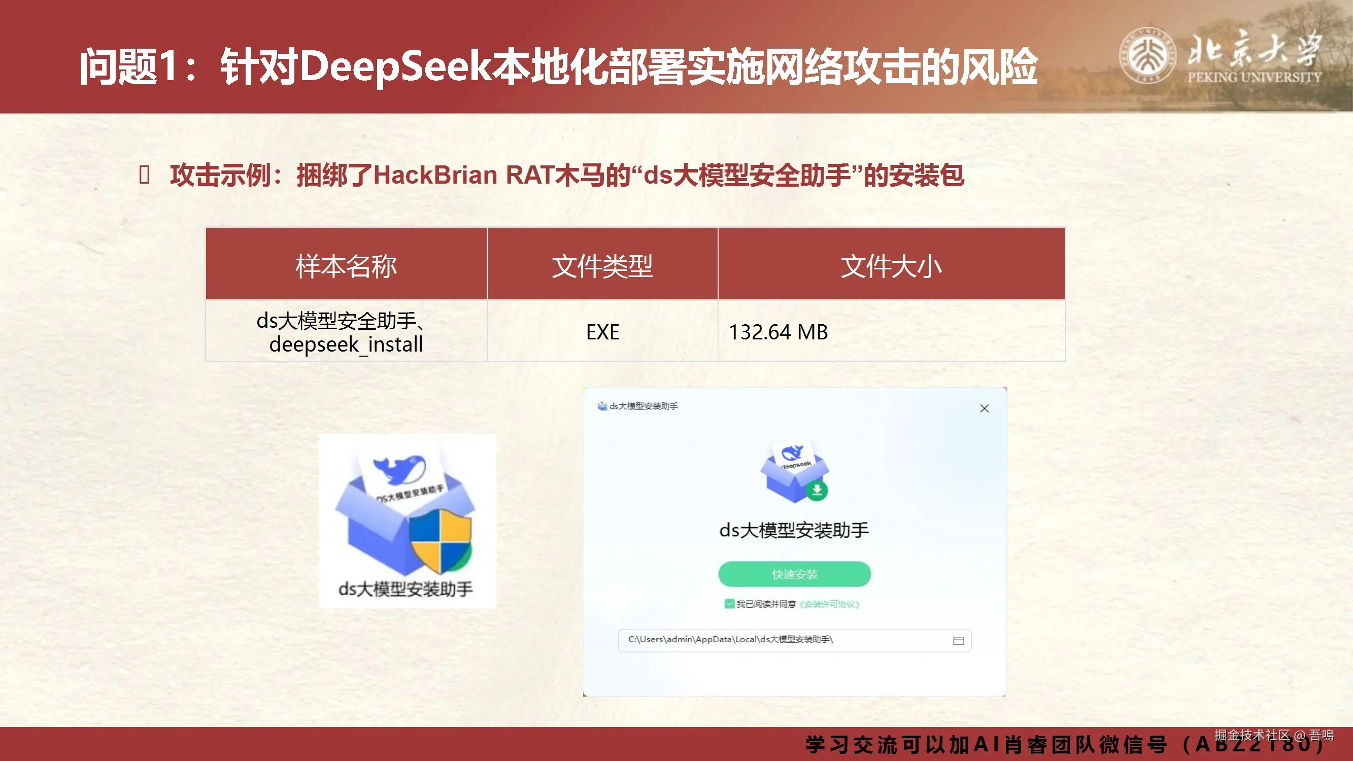 ① 网络攻击风险:攻击者利用钓鱼网站传播伪造的本地部署工具(如捆绑木马的“ds大模型安装助手”),植入远程控制程序(如HackBrian RAT),窃取数据或劫持服务器;