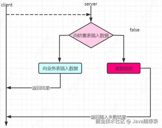 注意防重表和业务表应该在同一个库中,这样就保证处在一个事务中,即使业务操作失败,也会把防重表的数据回滚。保证了数据的一致性。