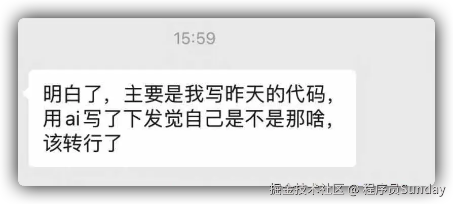 - 最后:我可以节约大量的成本。原先公司里面写代码的只有我一个,我能做的事情是有限的。但是有了 AI 则不同,我可以利用 AI 帮我完成原先需要两三个人才可以完成的工作。这让我可以做很多原先想做,但是没法做的事情。