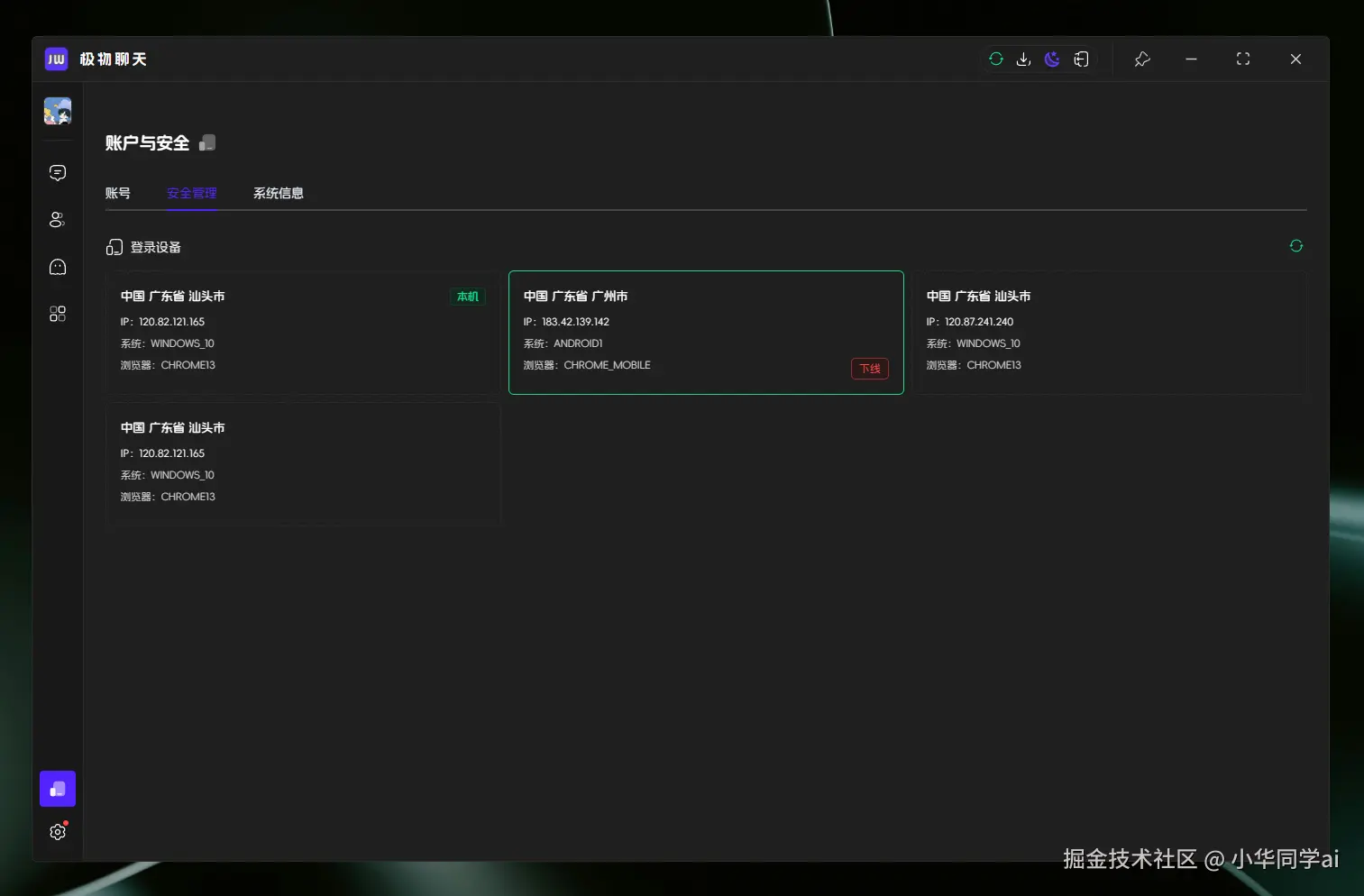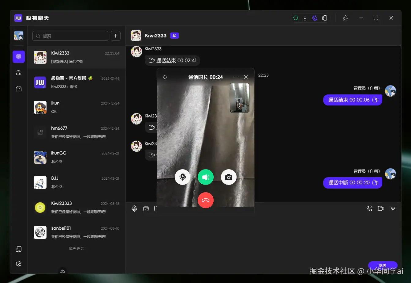 JiwuChat是一款基于Tauri2和Nuxt3构建的轻量化多平台即时通讯工具,仅约8MB体积却集成了AI群聊机器人、WebRTC音视频通话、屏幕共享等前沿功能。一套代码适配Windows/macOS/Linux/Android/iOS/Web六大平台,堪称开发者学习跨端开发的绝佳样板!