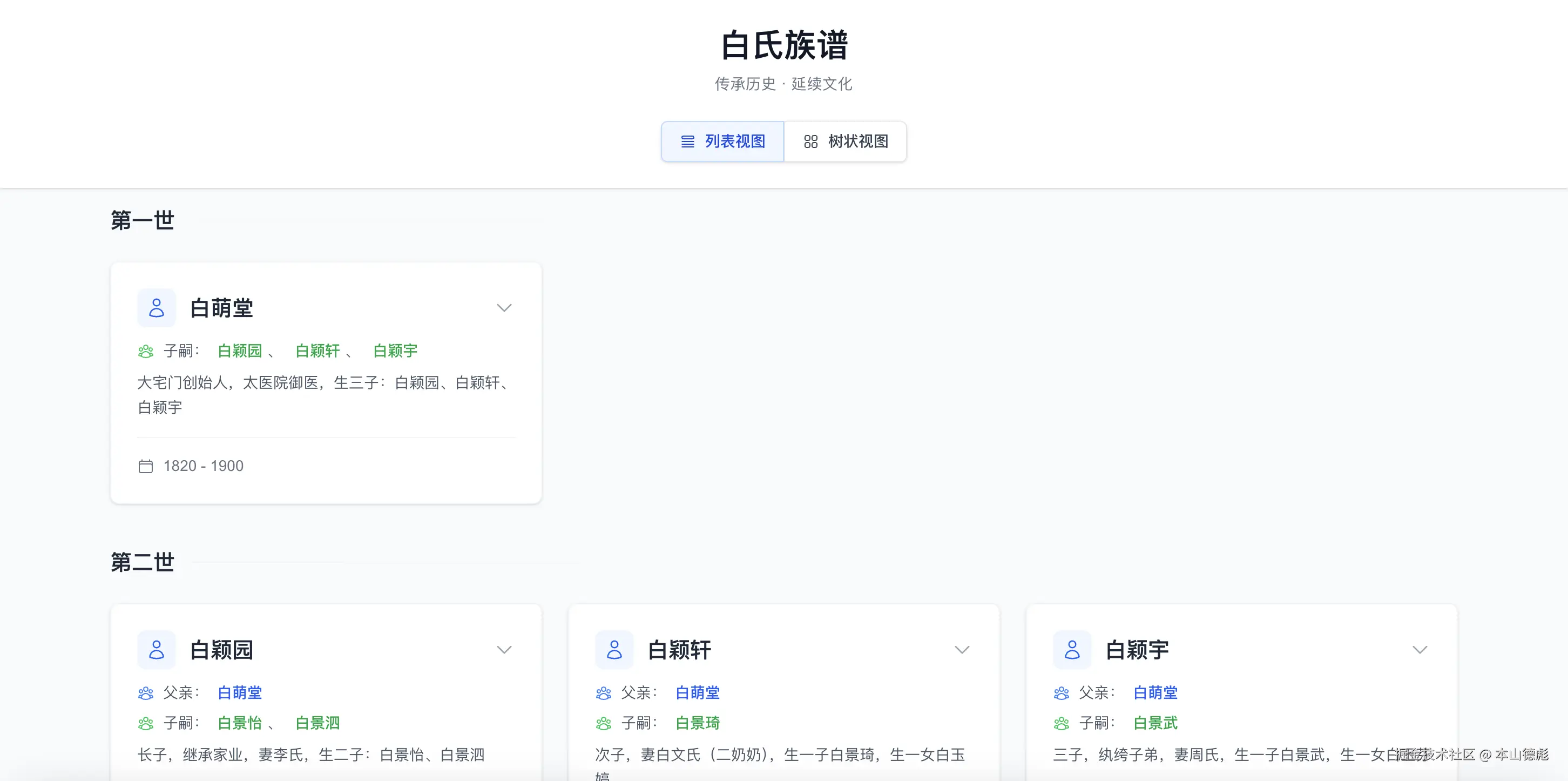 - 多代家族成员的可视化展示
