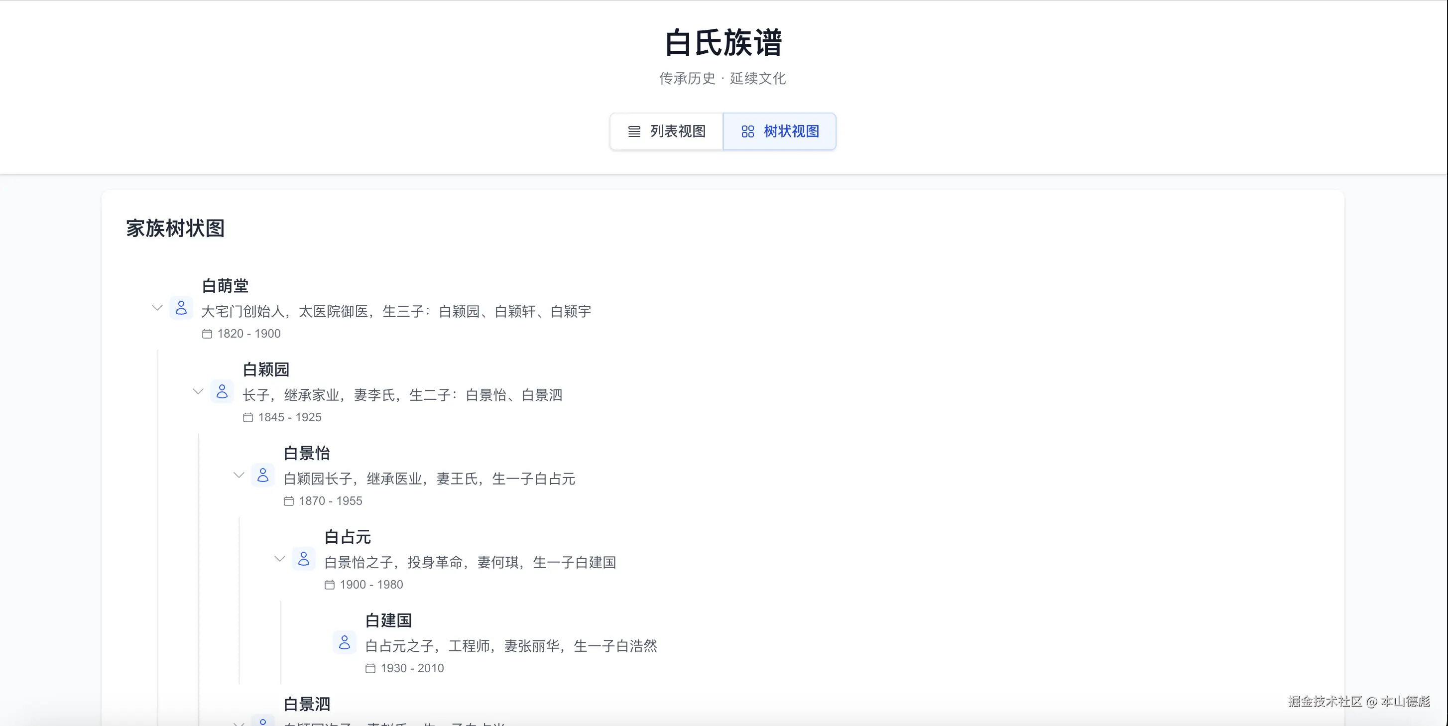 最近我用 Cursor 花了半天时间为自己的家族开发了一个族谱网站。分享后,很多亲友表示也想拥有类似的族谱网站来记录家族历史。 于是我决定再花半天时间将这个项目开源,让更多人可以为自己的家族创建专属族谱网站!