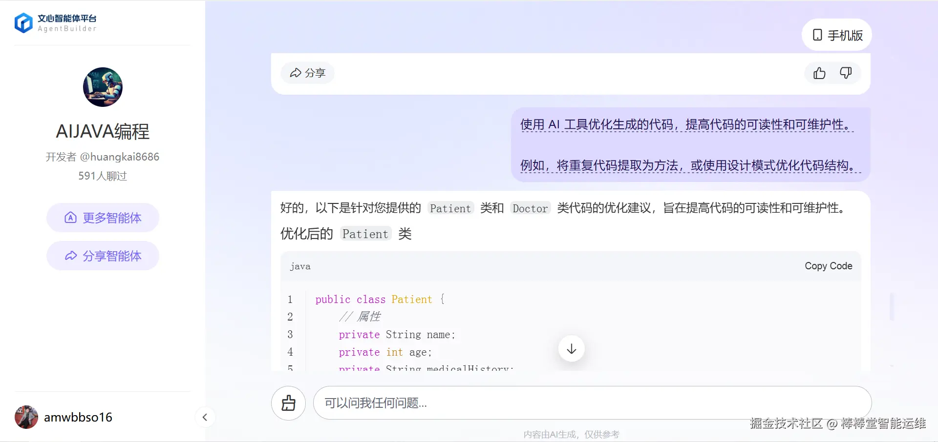 Patient、Doctor等)。 - AI 优化代码结构:使用 AI 工具优化生成的代码,提高代码的可读性和可维护性。