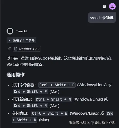 不会就问: 忘记了 VS Code 中的快捷键操作,直接在 Chat 聊天框中提问就好了。
