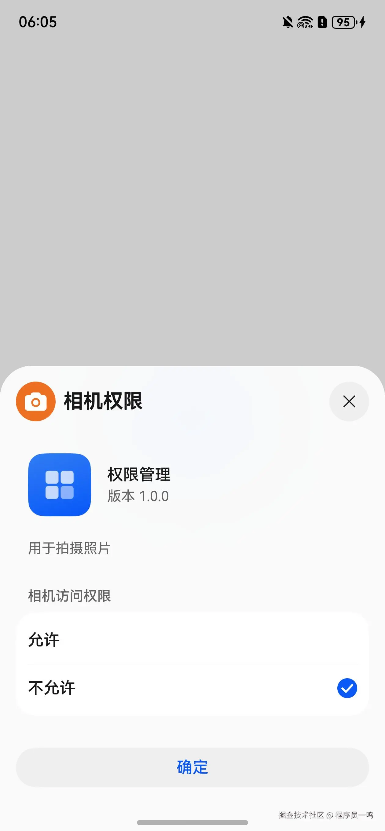 运行程序后,就会弹出如下的权限申请弹窗,此弹窗是系统的,不可修改。