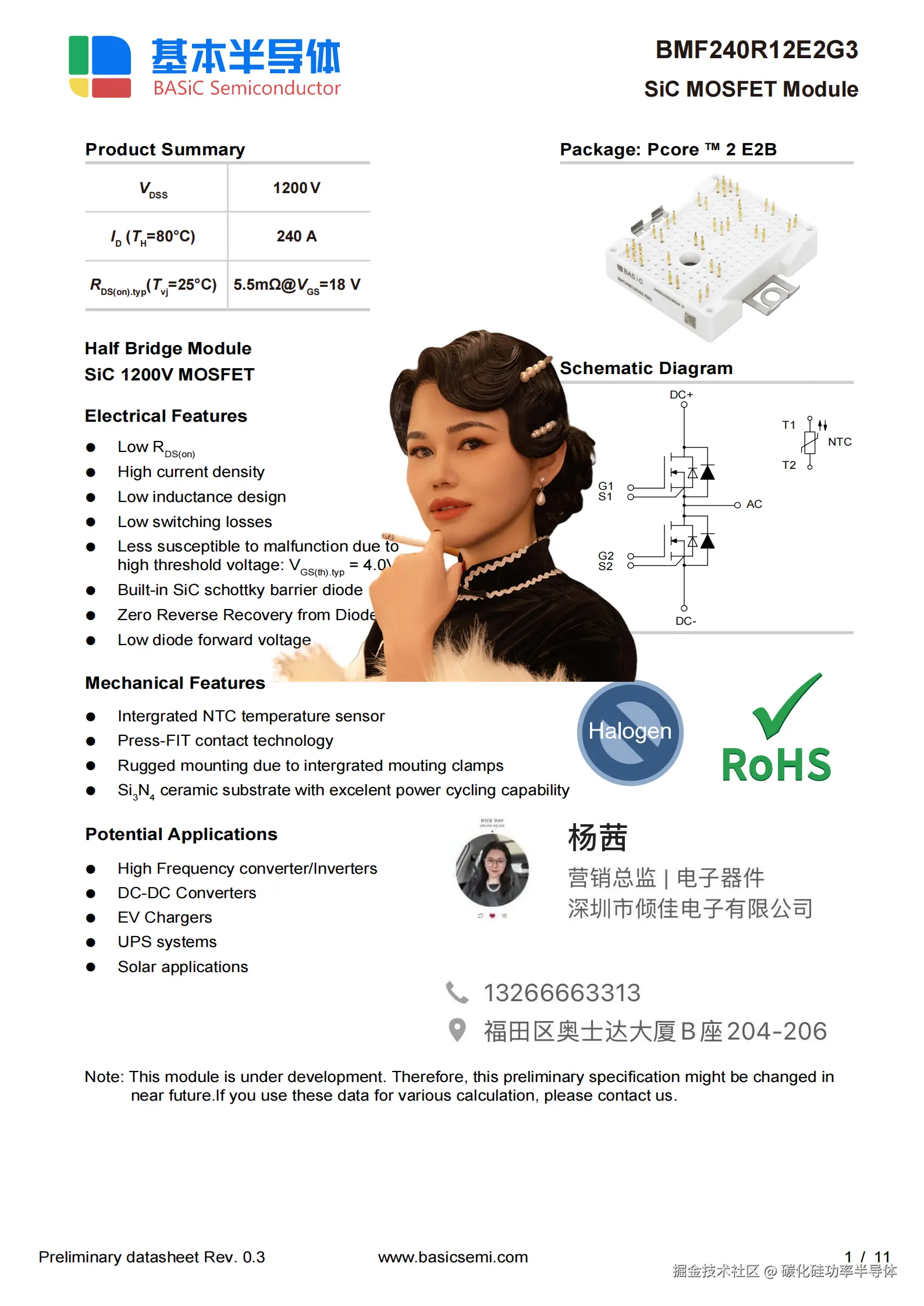 通过上述场景,BMF240R12E2G3不仅可替代传统硅基IGBT模块,更在高频、高温、高可靠性领域开辟新市场,助力新能源、高端制造与智能化转型。
