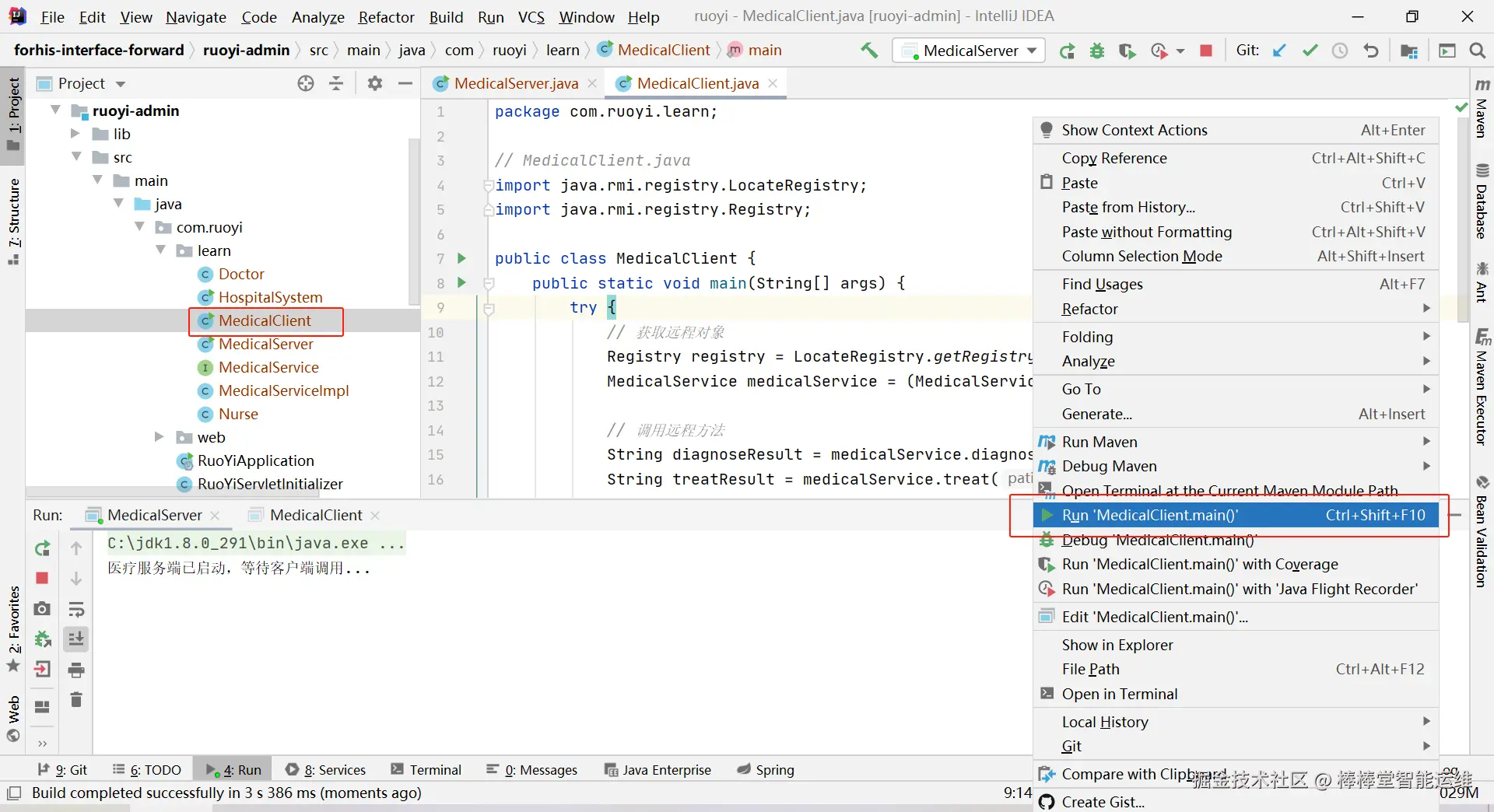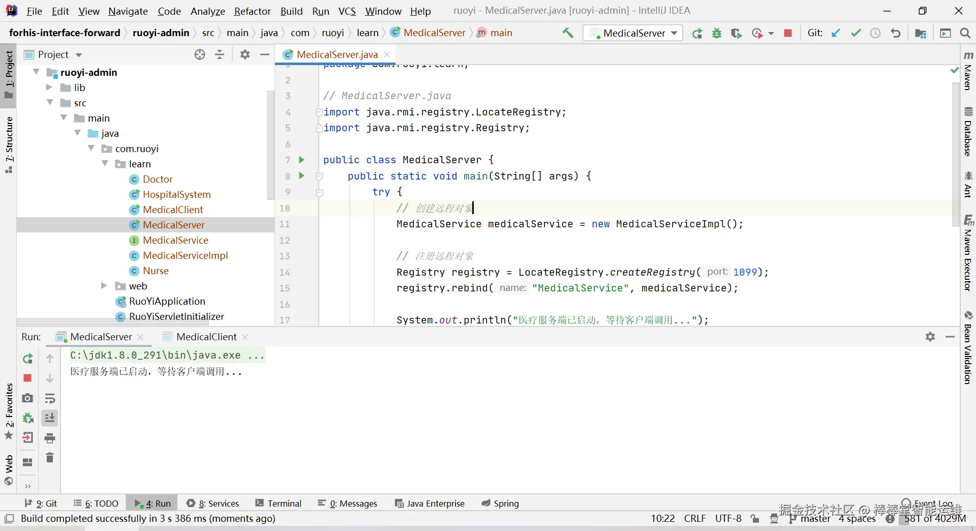 System.out.println("医疗服务端已启动,等待客户端调用...");
