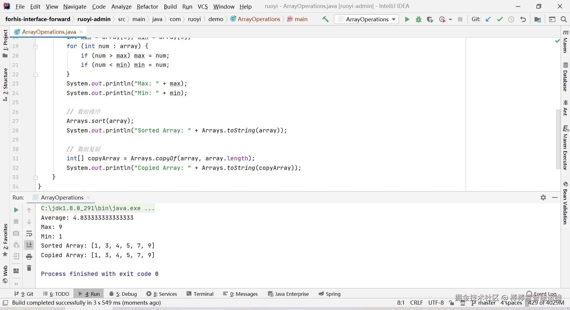 - 掌握一维数组的声明、初始化、遍历及常见操作(如求平均值、最大值、最小值、排序、复制等)。