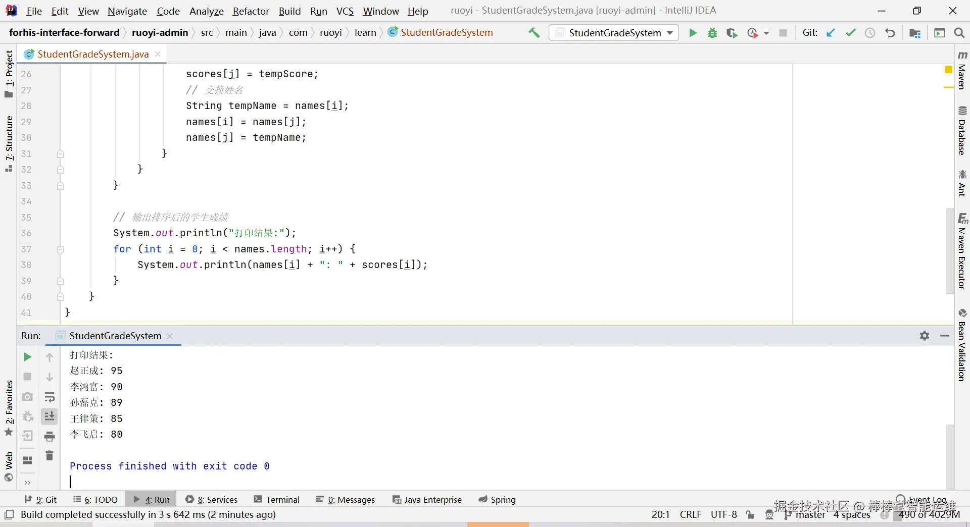 // 输出排序后的学生成绩