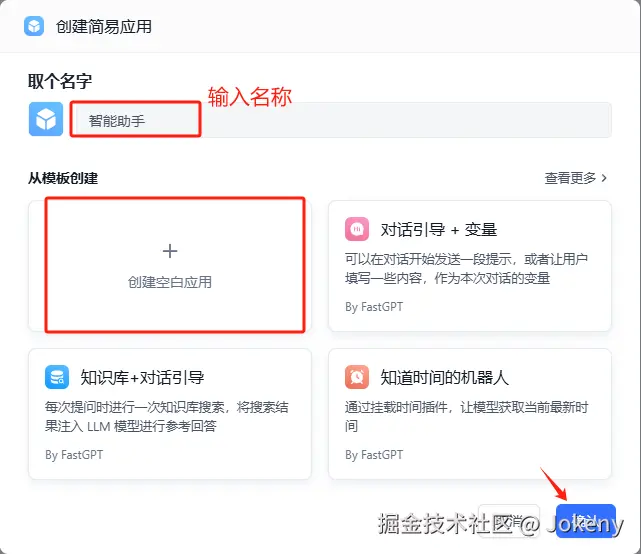输入应用名称,选择“创建空白应用”