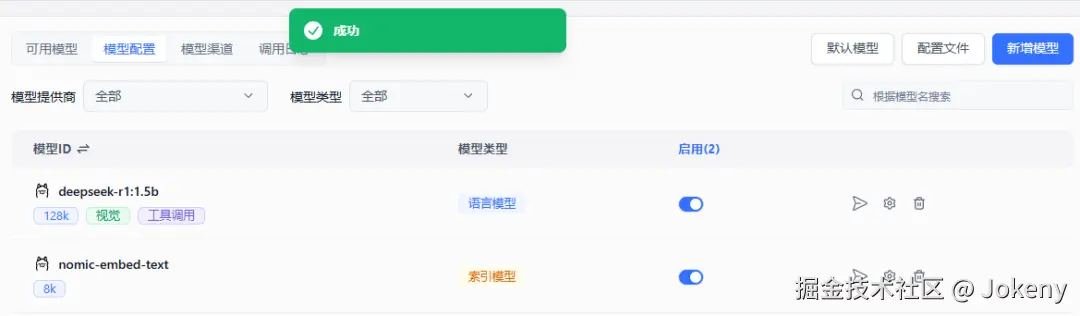 确认添加后,回到列表中点击“启用”列,可以看到刚刚添加的两个模型已启用,如下图: