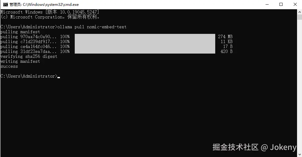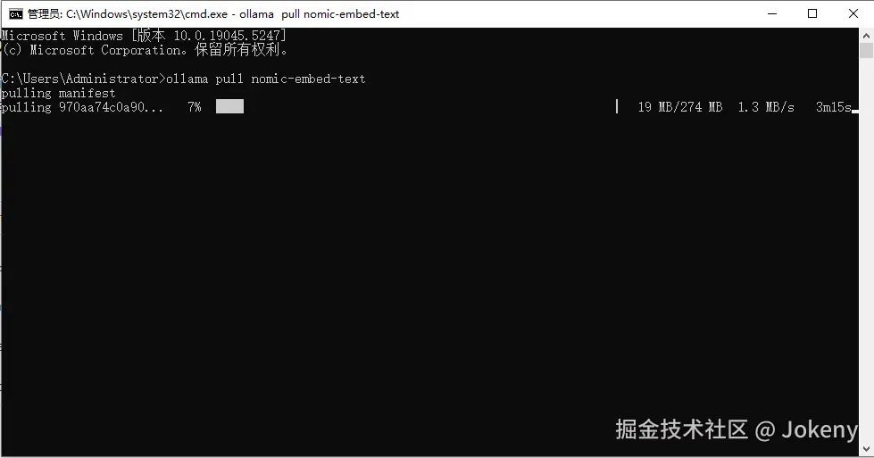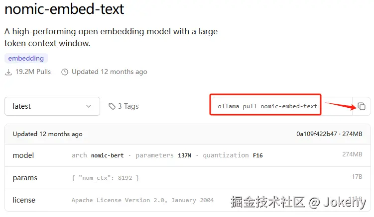 复制命令,然后运行 ollama pull nomic-embed-text