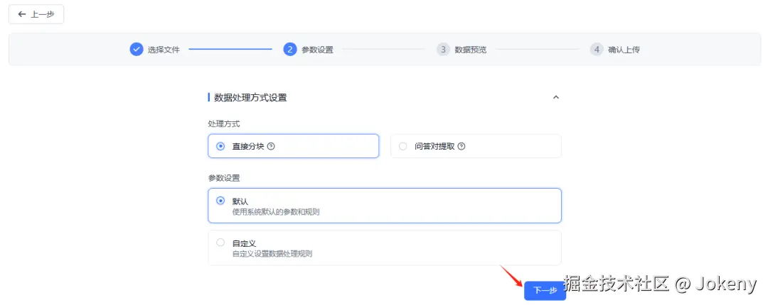 按需选择对应的“处理方式”和“参数设置”,点击【下一步】
