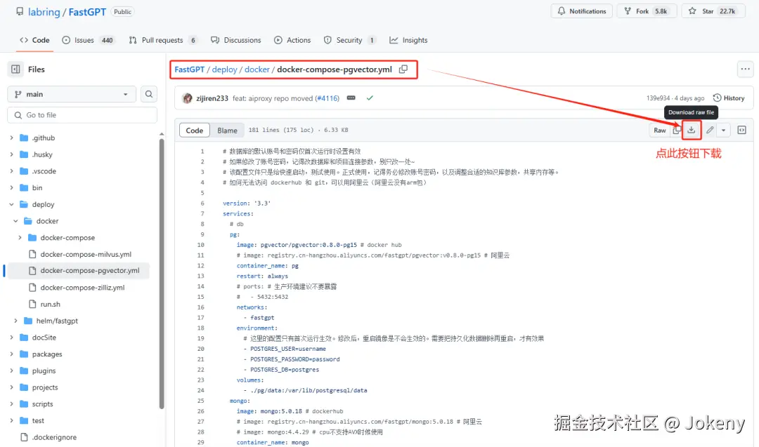 为啥要装Docker?因为它能一键部署FastGPT(不仅FastGPT,大部分的开源项目都可以用docker一键部署),操作起来特别方便,所以我强烈建议玩AI的朋友都安装上docker。对于如何安装docker,网上已经有大量详细的教程,大家自己搜一下就行。