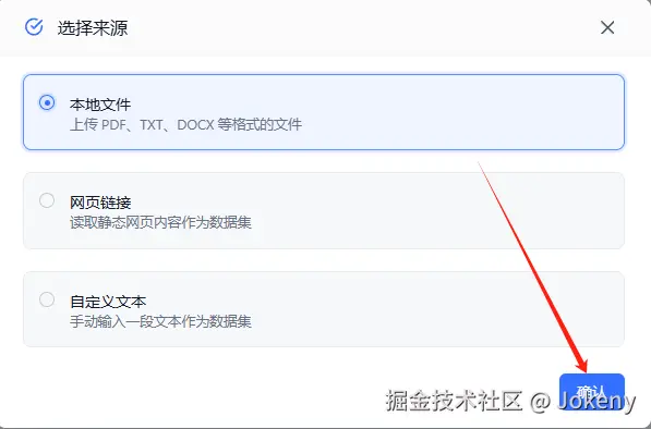 选择“本地文件”后点击【确认】按钮,如下图: