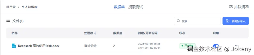 当状态显示为“已就绪”时,说明知识库已经搭建完成