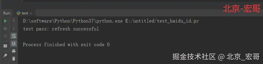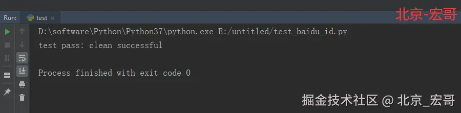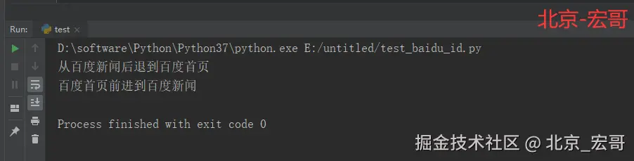 相关代码如下,为了演示测试效果,我们运行完脚本,不关闭浏览器: