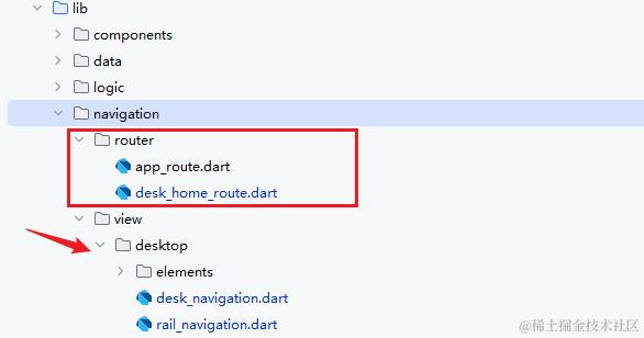 - view 文件夹盛放导航相关的视图,在 desktop 文件夹下盛放桌面端的导航视图: