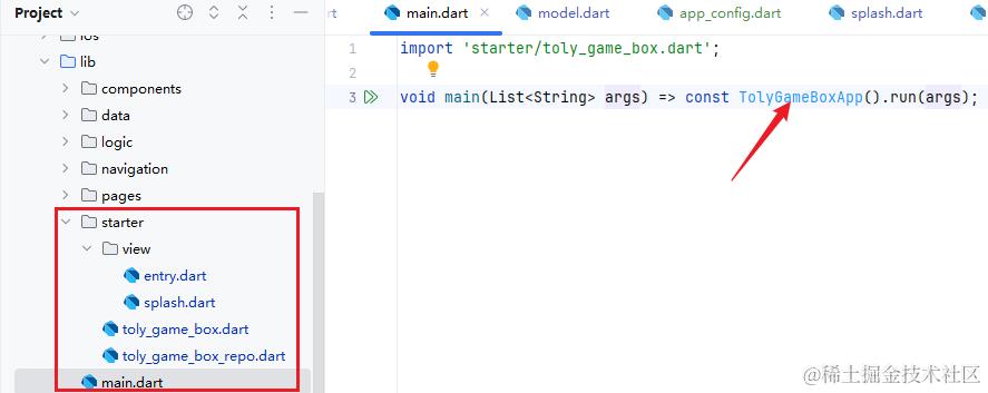 启动的代码如下,主要在 starter 文件夹下,其中自定义了 TolyGameBoxApp 启动器,在 main 中调用启动器的 run 方法即可工作: