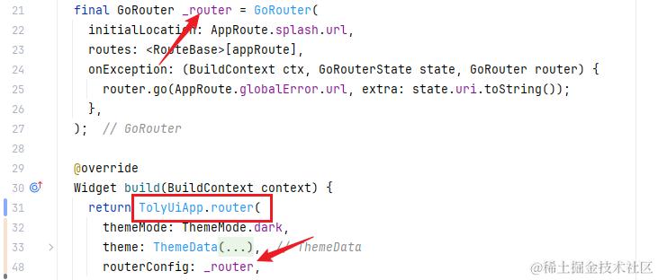 为了更好的维护全局通知、主题,TolyUI 对 MaterialApp 进行了全量的封装,提供了 TolyUiApp,使用方式和 MaterialApp 完全一致: