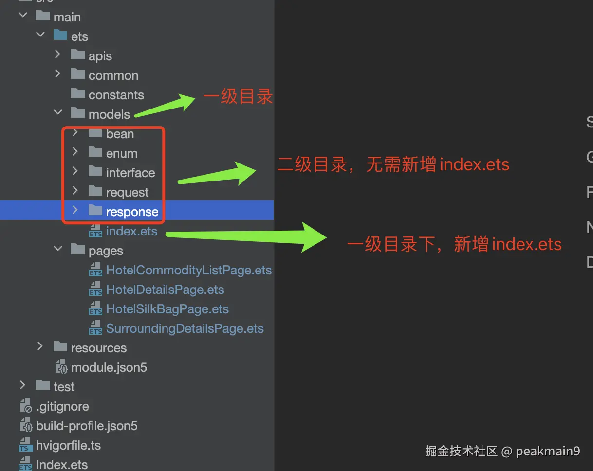 index.ets的文件,这个文件的作用是把该目录下所有需要导出的组件统一导出,方便其他地方引用 - 若本目录下没有任何导出文件,可无index.ets,如 pages目录