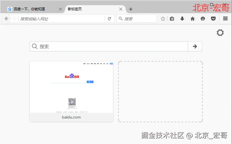 本小节介绍如selenium方法打开一个新的tab,我们知道在浏览器里,我们按住 ctrl+ t 就可以新打开一个tab。所以我们学习如何利用webdriver中send_key 的方法去触发ctrl+t的效果。我们利用火狐浏览器来演示。