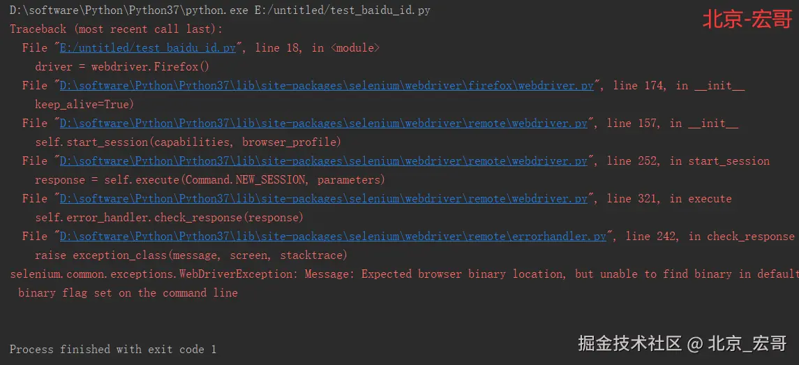 原因是:未找到浏览器的位置,宏哥这里提供解决办法有两种,仅供参考!!!