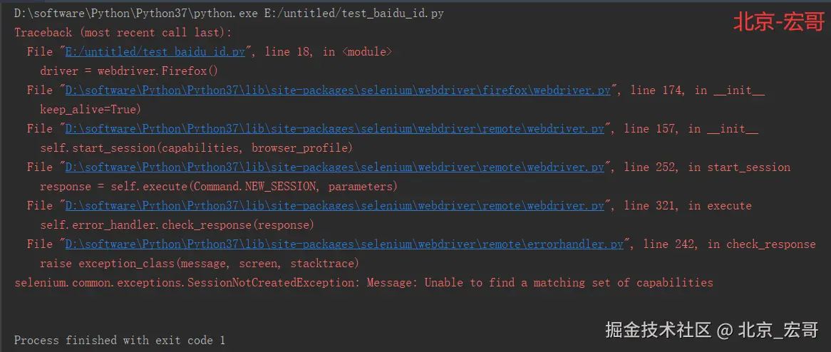 这个有的人认为是浏览器和浏览器驱动的版本不匹配也会报这个错误。