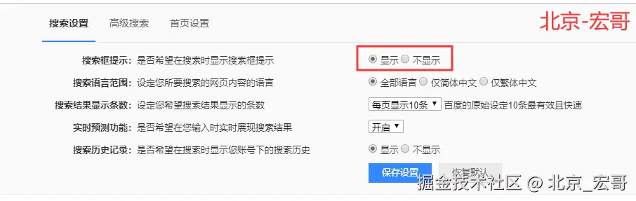 利用百度搜索设置页面两个单选按钮举例