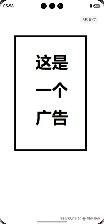 Start页面中,读取本地存储的广告,展示广告内容,实现倒计时逻辑,点击跳过会调用toMain()方法。