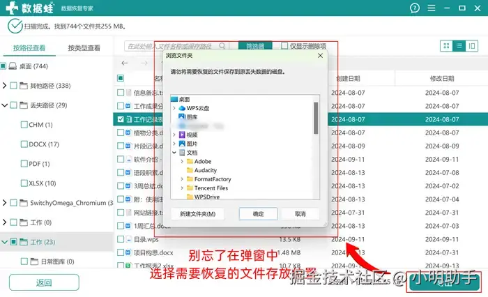 步骤3:最后别忘了要在弹窗中的选择恢复文件的另存位置。