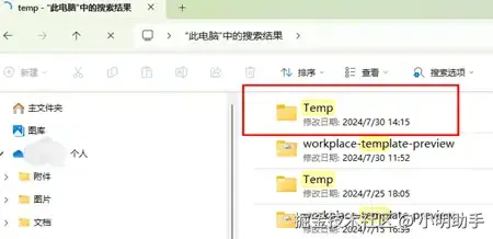 在电脑硬盘中找到临时文件夹,通过找到丢失文件的临时备份文件,我们也能实现基本的回收站文件恢复。回收站清空了怎么恢复?该回收站数据恢复方法可能比较繁琐,需要用户花些时间才会有比较好的恢复效果。在【此电脑】中搜索【temp】,等待电脑搜索完毕后,在点击进入同名文件夹即可。