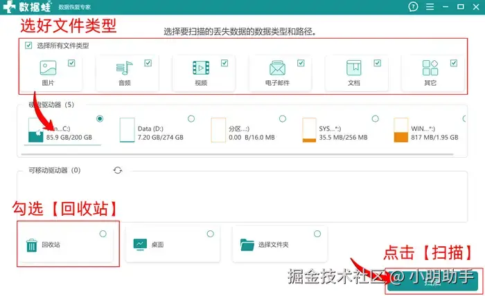 电脑回收站清空了如何找回删除文件?数据 蛙恢复专家能够帮助你大大简化恢复流程: