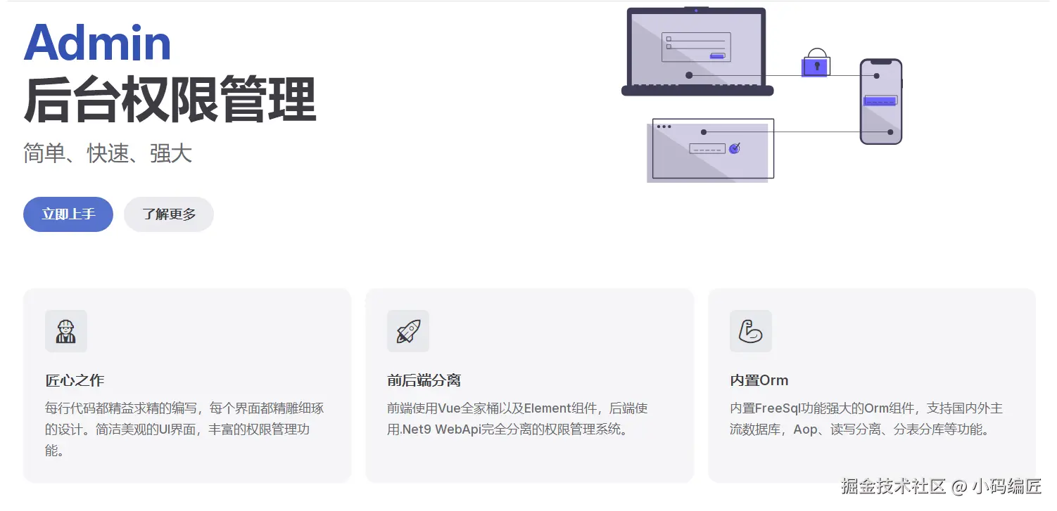 推荐一个基于 .NET 9.0 与 FreeSql 全家桶为核心技术栈,整合了 Autofac(依赖注入)、Mapster(高性能对象映射)、CAP(分布式事务)等前沿组件的前后端分离后台权限管理系统。