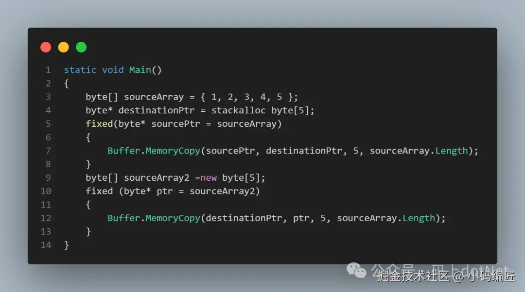 指针操作: Buffer.MemoryCopy 需要操作指针,因此通常在不安全的上下文中使用(即使用 unsafe 关键字)。