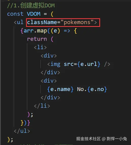 <li>妙蛙种子</li>就是JSX语法,不要觉得奇怪,如果你实在不适应,也得努力去适应,没办法,JSX就是这样的,它允许你随时随地写上一段HTML代码,贼拉风。